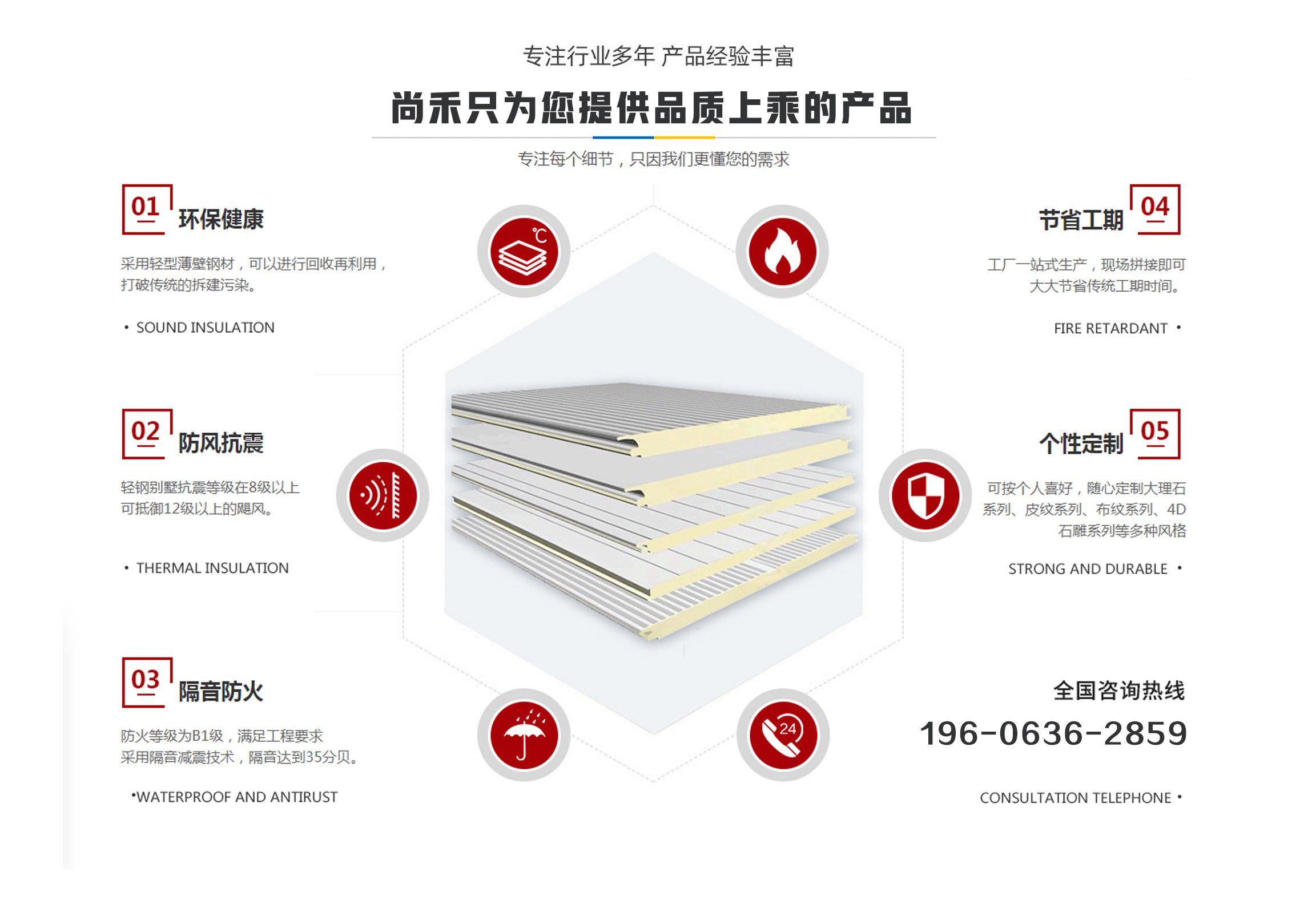 山東尚禾經貿有限公司是集板材設計、研發、生產、施工、一體化的科技公司,并在同行業中率先通過了質量、環境、安全管理體系認證。公司2011年投入資金2000余萬元引進世界先進的聚氨酯節能板連續生產線、意大利進口發泡系統,采用六組份在線自動操作混合澆注技術,在線一次性完成社會配料中心或工廠的配比混合工藝,并可以根據溫度在線自動調整,從而生產處與眾不同的高強度、節能型、綠色環保的聚氨酯夾芯板。(其使用年限高于同行業其他品牌5-10年)  公司主要經營范圍包括聚氨酯夾芯板,PU夾芯板,冷庫板,潔凈板,聚氨酯冷庫板,冷庫保溫板的設計、生產、銷售、技術指導、安裝及一體、以及進出口業務,是中部六省最大的綠色節能建材生產基地。聚氨酯夾芯板年產200萬平方米、PU夾芯板、冷庫保溫板500萬平方米、鏈整產業綜合實力,開創了六省至中西部創新型中小名企總部基地,并將著力推進中國中西部地區集成房屋住宅產業化發展進程。  科技創新、節能典范。千萬間始終秉承“誠信、合作”的企業文化精髓,長期致力于鋼板材結構節能建筑產業,愿與社會各界攜手合作,共鑄綠色、環保美好未來。 產品具有良好的絕熱、阻燃、隔音、環保、耐久性能,可廣泛應用于工業、商用建筑內外墻、以及民用建筑外墻保溫、空調通風系統、專用防火保溫門等領域。  我們始終秉承...